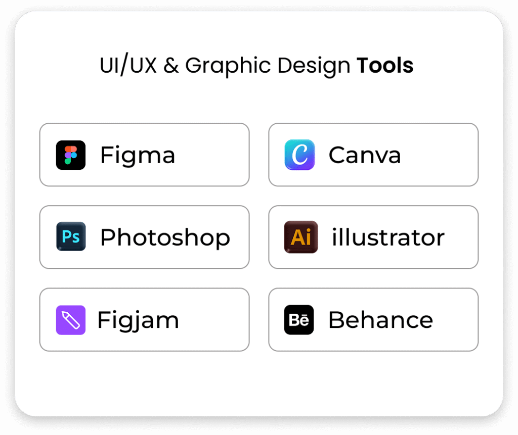 Our industry-focused UI/UX training covers the essential visual and experiential aspects of design, introducing you to modern tools and workflows such as Figma, Adobe Photoshop, Illustrator, wireframing, prototyping, user testing, and design systems.
